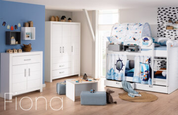 The bigger the children get, the more space they need for their toys. Thanks to its elegant design, the changing unit becomes a timeless dresser for clothes and all your favourite things. A lot can also be stowed away in the shelf, which is a stylish room object. No matter if a door is used or not it can be closed off or can be used an open shelf. Whether it’s a hanging shelf, a shelf to slide underneath the bed or even a lowboard used as the first piece of furniture for a television set: There are plenty of flexible options for furnishing the children’s room. And the furniture not only looks good, but also offers plenty of storage space with large wall shelves or corner wardrobes with coat racks.