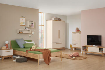 Stiene brings Scandinavian serenity into the room of your kids and teens – in a timeless design that combines warm cashmere beige with fine oak wood. The furniture series stands for high-quality materials and loving details that give the room a stylish and cosy atmosphere.
