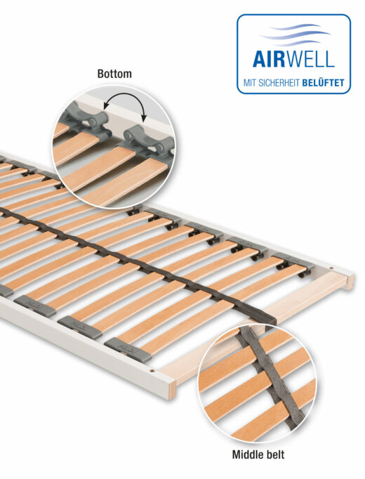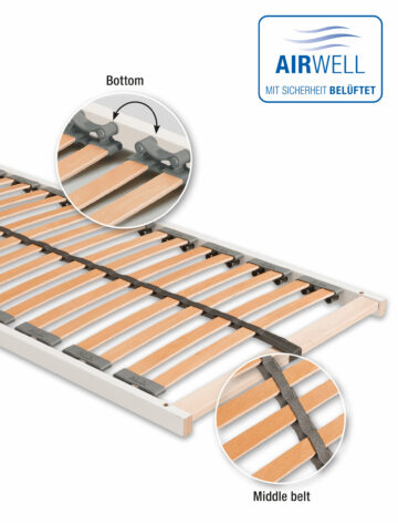 The PAIDI Airwell® system offers the ideal conditions for a healthy sleep thanks to three components: a high-quality Airwell® mattress, the Airwell® Comfort slatted base and the Airwell® Sensitive double cloth complement each other to create the perfect combination.