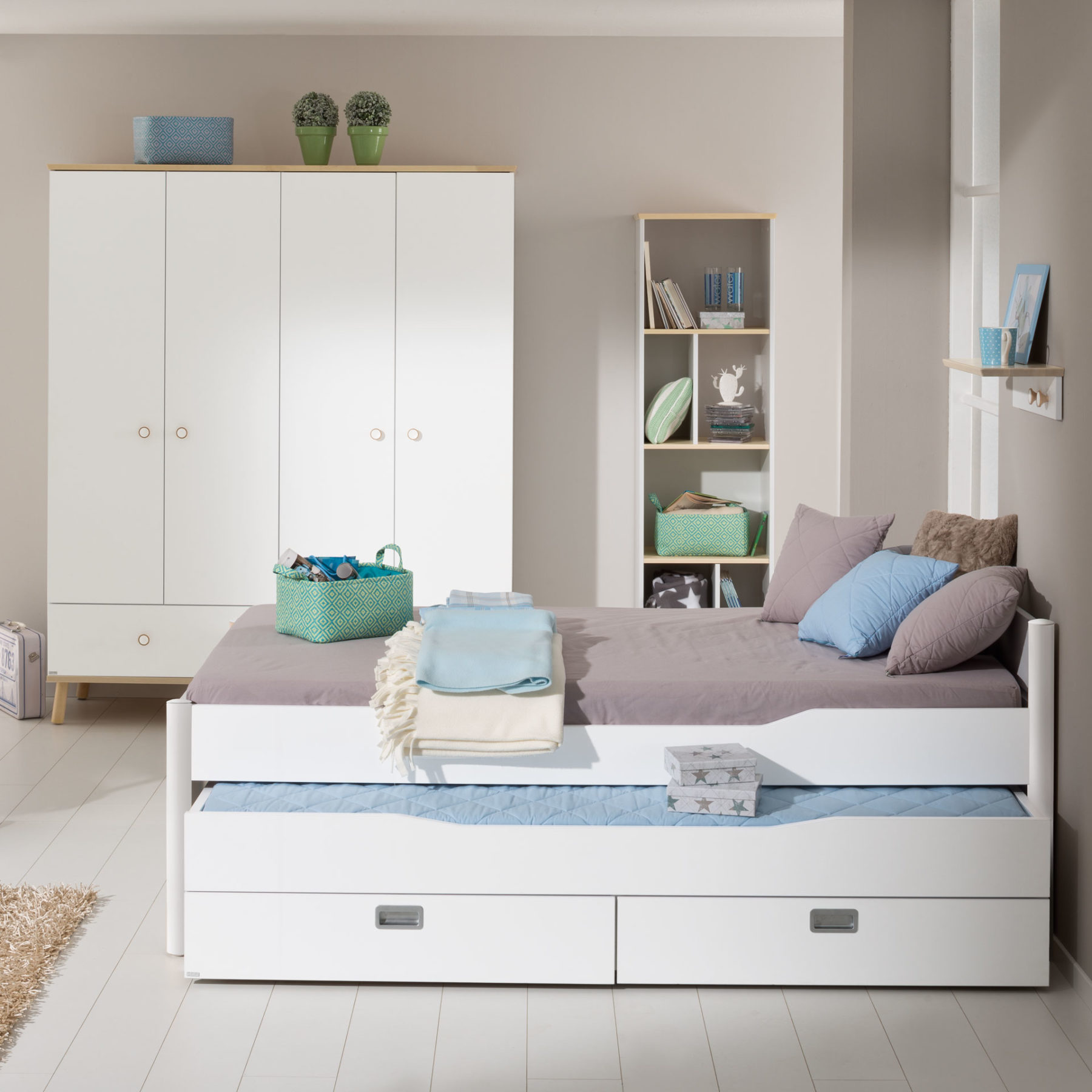 Harmonie dans la chambre d’enfant avec un look bouleau naturel scandinave.