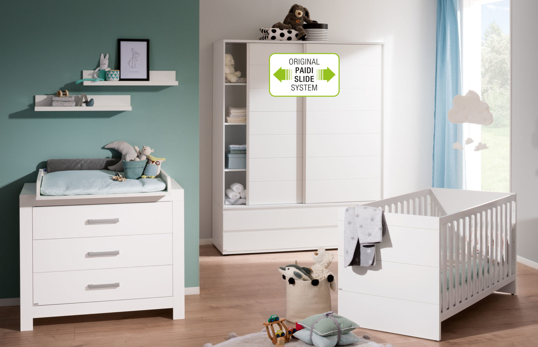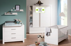 Les deux portes coulissantes des armoires freinent de deux côtés pour les mains puis se referment doucement. EIles se glissent complètement l’une derrière l’autre et peuvent également être échangés si vous le souhaitez.