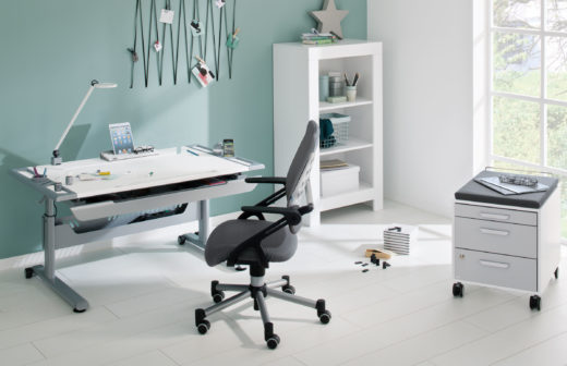 Zahlreiches Zubehör unterstützt die Kinder beim Lernen und Arbeiten. Ob Schubkastenauszug, Utensilienschale, Buchstütze oder Kids-Butler für Tablets & Co. – so können die Schüler bei den Hausaufgaben leicht Ordnung halten.