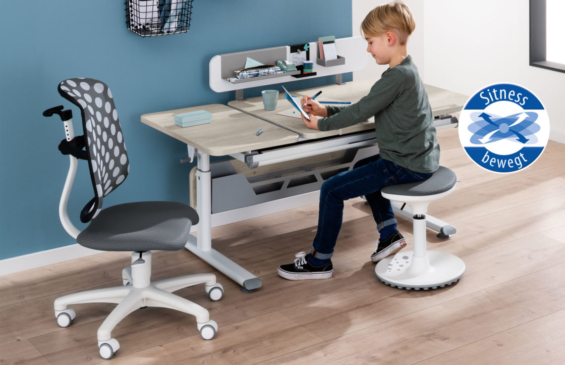 Der Hocker mit der Sitness®-Technologie hält Schüler beim Sitzen in Bewegung und trainiert den Rücken.