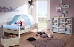 Für alle Liegen, Spielbetten, Hochbetten und Kojenbetten gibt es Absturzsicherungen, auch erhöht und ringsrum. Das Spielzubehör und Textilzubehör ist riesig: ob Kletter- oder Sprossenwand mit Spielmatte, Basketball-Set und natürlich Zelte, Vorhänge und Kissen in vielen Motiven.