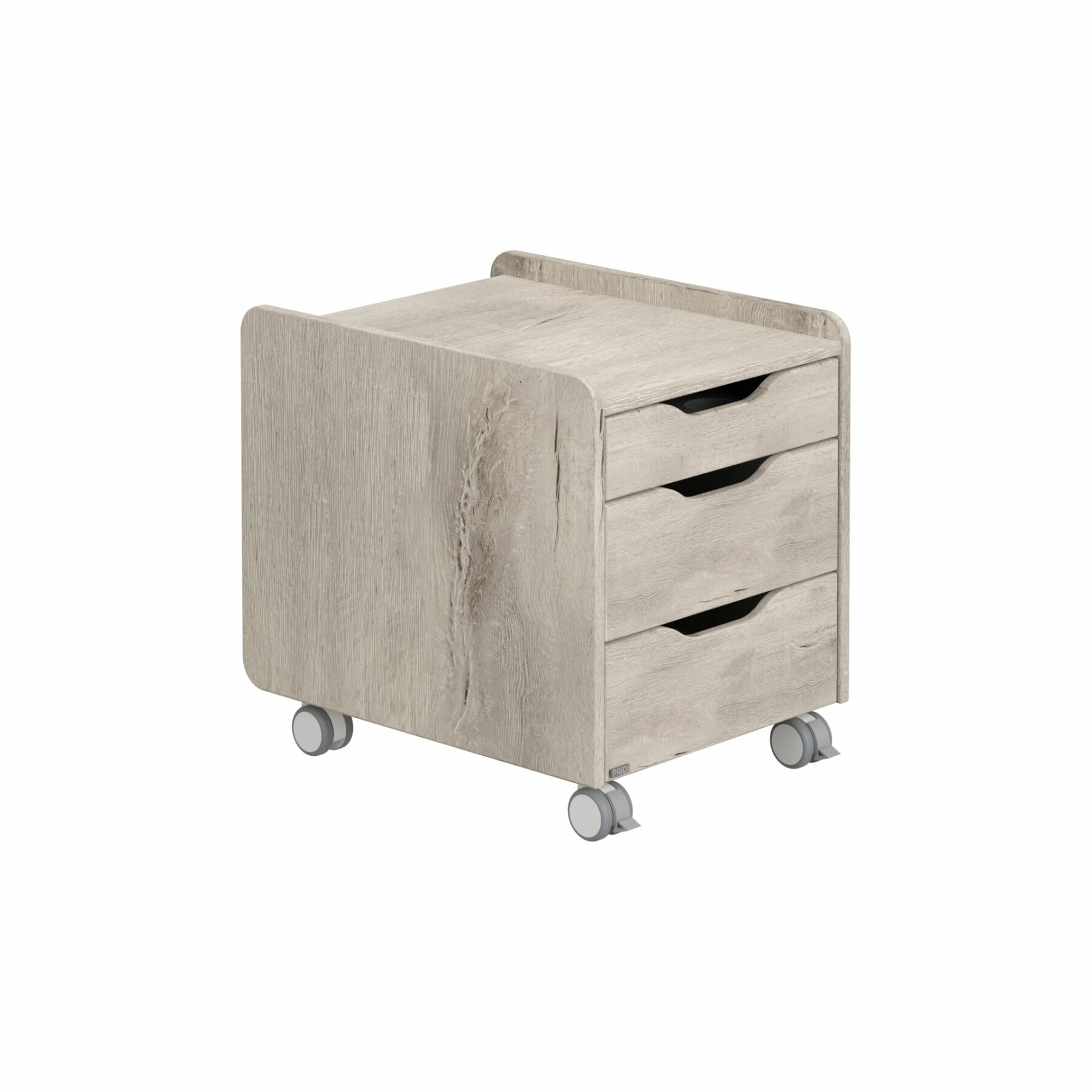 Mit 4 Rollen in Grau/Weiß (2 feststellbar).